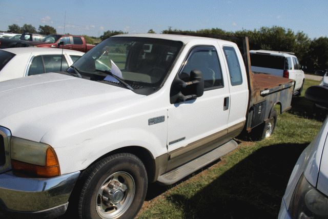 2001 Ford F350 Flatbed Pickup; VIN 1FTSX30F41EB97785; MILEAGE UNKNOWN; Gas; Auto; Bench seat; Rubber mats; A/C; PS; PB; PW; PL; Radio; Has key; DOES NOT RUN; NEEDS BATTERY; SEIZED; Location 2