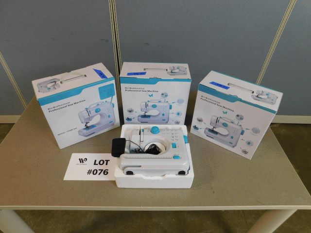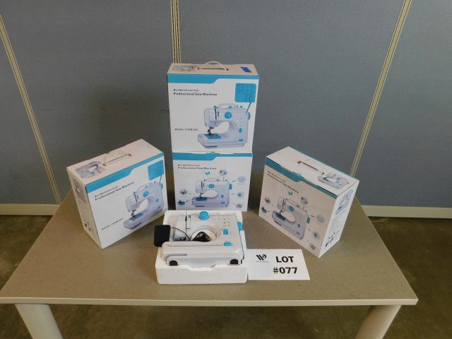 Lot of approximately 4 Mini Multifunctional Professional Sew Machine Model # FHSM-505, approximately machine size 11" wide x 4.75" deep x 11" high, 6v AC/DC power or 4 AA batteries; Inspection and Removals: Appointments are MANDATORY - no appointment, no inspection, no removal. Appointments must be made 24 hours in advance; Location 1