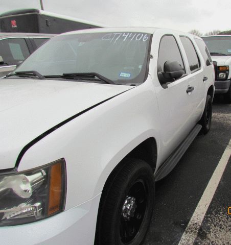 2013 Chevrolet Tahoe PPV; VIN 1GNLC2E03DR259664; 140,308 Miles showing; 5.3L Gas; Auto; Bucket and 60-40 seat; Rubber mats; A/C; PS; PB; PW; PL; Rear defrost; Trunk release; Radio; Has key; Running when removed from service; Cracked dashboard; Has 2nd row seating
