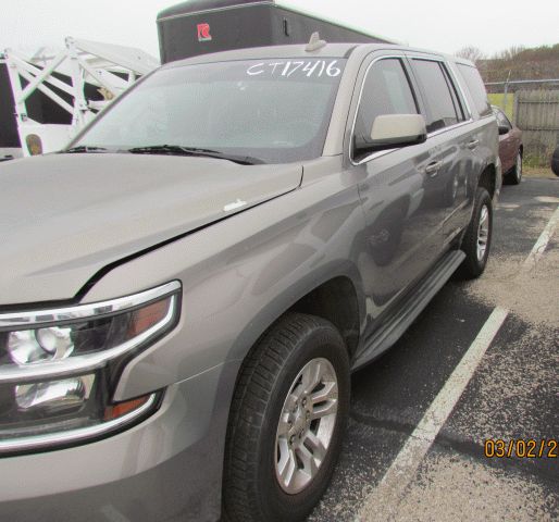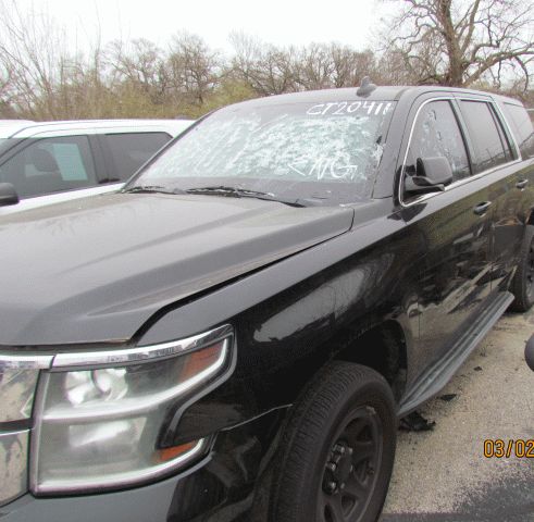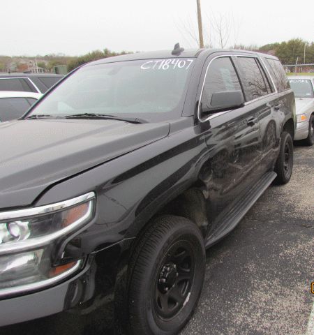2017 Chevrolet Tahoe PPV; VIN 1GNLCDECXHR247426; 121,761 Miles showing; 5.3L Gas; Auto; Bucket and 60-40 seat; Rubber mats; A/C; PS; PB; PW; PL; Rear defrost; Trunk release; Radio; Has key; Running when removed from service; Has 2nd row seating; DAMAGED HEADLIGHT, FRONT FENDER, AND BUMPER. CRACKED WINDSHIELD. DAMAGED DRIVER'S DOOR.