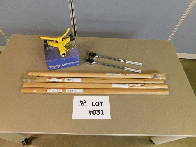 Lot containing approximately, 1 Westward whirling sprinkler #1HLW4, 2 Proto #5450 16" 1/2 drive ratchets, 4 Ames #2036200 36" Hickory sledge handles; Inspection and Removals: Appointments are MANDATORY - no appointment, no inspection, no removal. Appointments must be made 24 hours in advance; Location 1