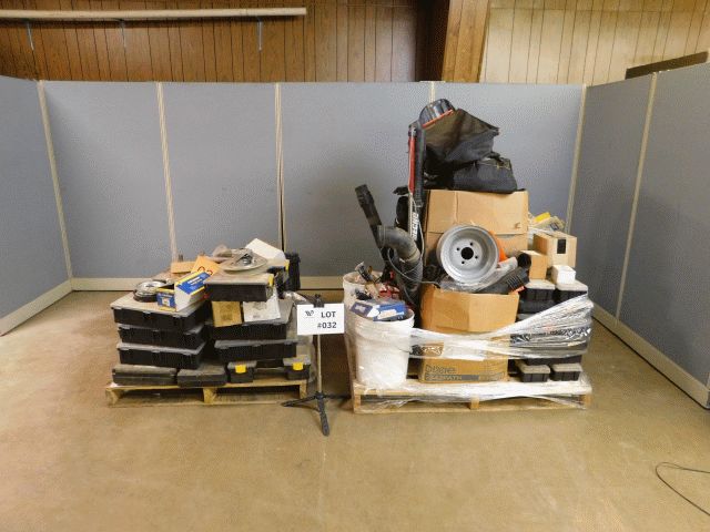 Lot containing 2 lots of new and used small engine parts, pullies and tools with wear and tear, and damage. Operational condition of items unknown; Inspection and Removals: Appointments are MANDATORY - no appointment, no inspection, no removal. Appointments must be made 24 hours in advance; Location 1