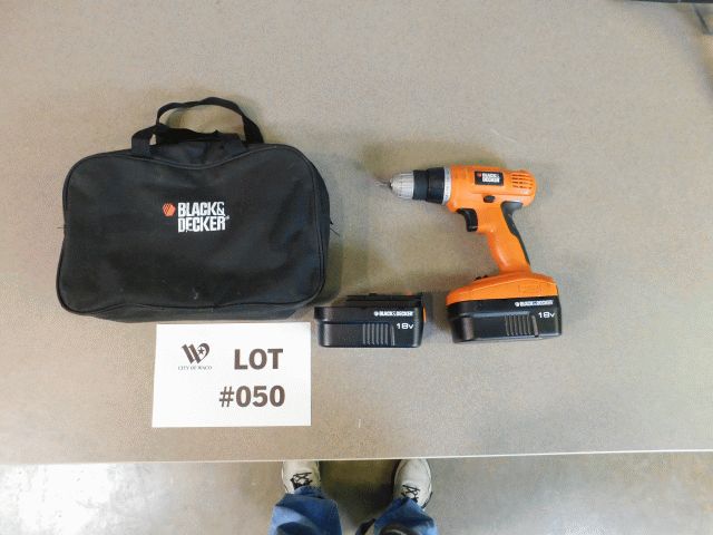 Lot of 1 Black & Decker 18v Cordless drill with two batteries. With visible wear and tear. No charger. Operational condition unknown; Inspection and Removals: Appointments are MANDATORY - no appointment, no inspection, no removal. Appointments must be made 24 hours in advance; Location 1