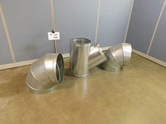 Lot of 3 M&M galvanized steel duct joints, 2 model #12520 90 deg. 20", 24 gage and 1 model # 800181616 Lateral duct WYC 18"x16"x16", 28 gage; Inspection and Removals: Appointments are MANDATORY - no appointment, no inspection, no removal. Appointments must be made 24 hours in advance; Location 1