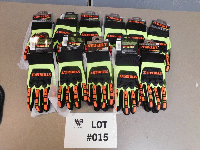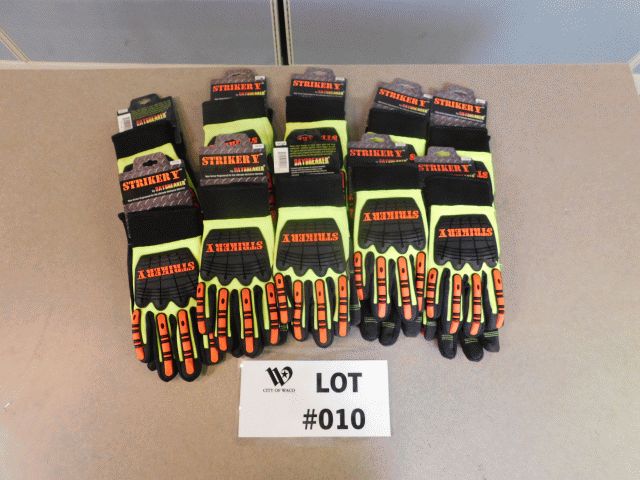 Lot containing approximately 11 Striker V gloves by Daybreaker, size X-large, model #0920XL; Inspection and Removals: Appointments are MANDATORY - no appointment, no inspection, no removal. Appointments must be made 24 hours in advance; Location 1