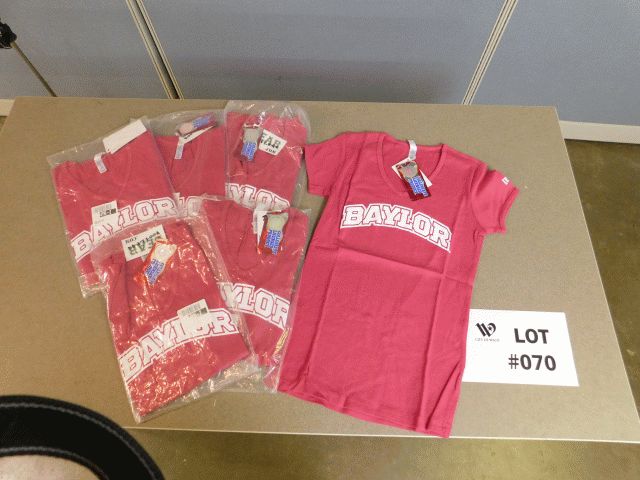 Lot of approximately 6 Bela small dark pink ladies V-neck Baylor t-shirts; Inspection and Removals: Appointments are MANDATORY - no appointment, no inspection, no removal. Appointments must be made 24 hours in advance; Location 1