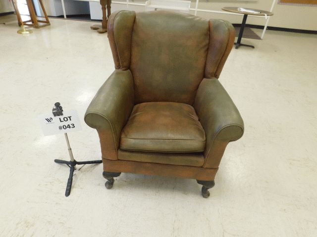 Lot of 1 arm chair with visible wear and tear, fading and decolorization. Approximately 33" wide x 31" deep x 40" high.