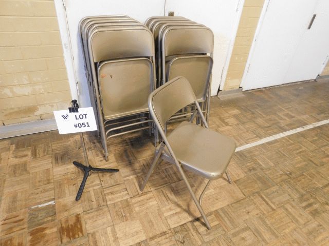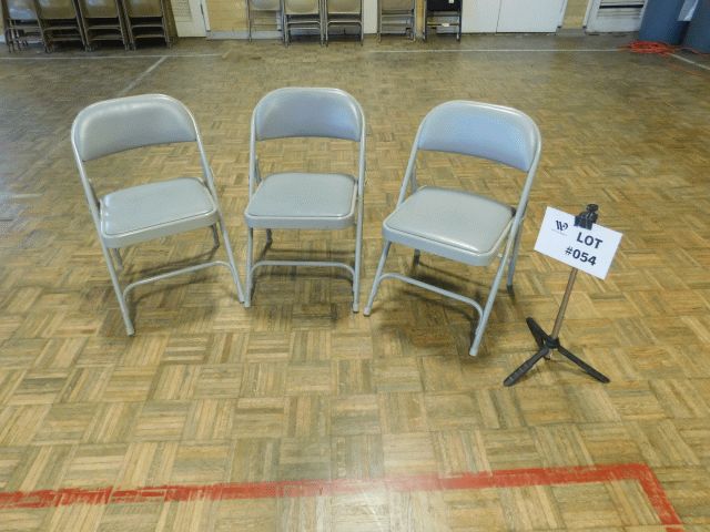 Lot of approximately 3 gray Swinton Avenue Trading item #458-455 padded metal folding chairs, all units have wear and tear, and seat back pulling apart.