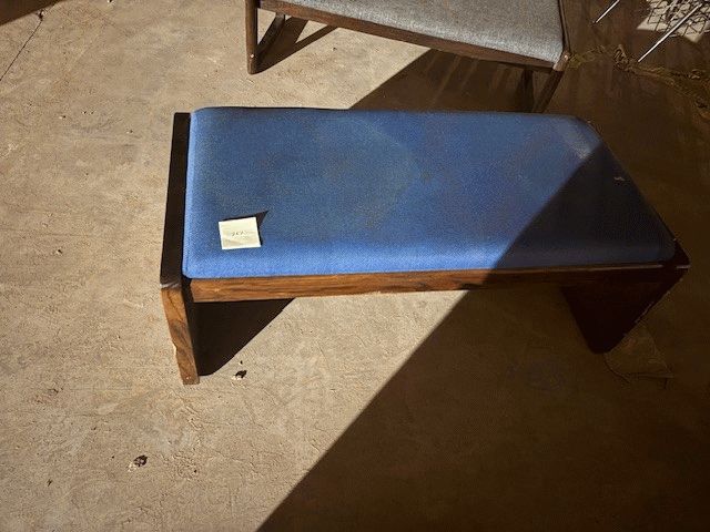 Wooden Bench With Blue Cushion 50" Long; Location 2