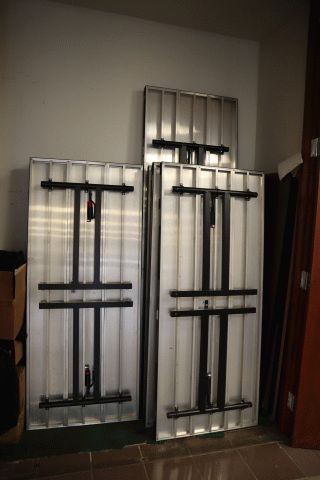 10 folding tables, Skirting, Coat rack, Crescent table - 2 pieces, 8 display signs in bags; Location 1