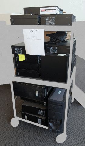 Assorted PCs NO HARD DRIVES, cart (shelf) not included; Location 2