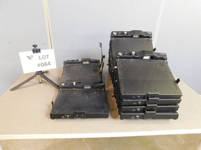 Lot of approximately 10 Panasonic CF-WEB301M Vehicle mount port replicator for Panasonic Toughbook. No keys. All units have wear and tear. Operational condition unknown; Inspection and Removals: Appointments are MANDATORY - no appointment, no inspection, no removal. Appointments must be made 24 hours in advance; Location 1