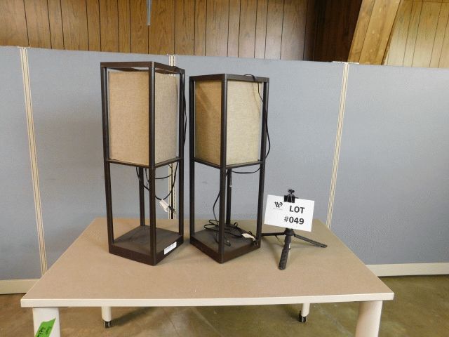 Lot of 2 brown lamps. 1 approximately 10"wide x 10" deep x 32" high and 1 approximately 10"wide x 10" deep x 33" high. With visible wear and tear. Operational condition unknown; Inspection and Removals: Appointments are MANDATORY - no appointment, no inspection, no removal. Appointments must be made 24 hours in advance; Location 1