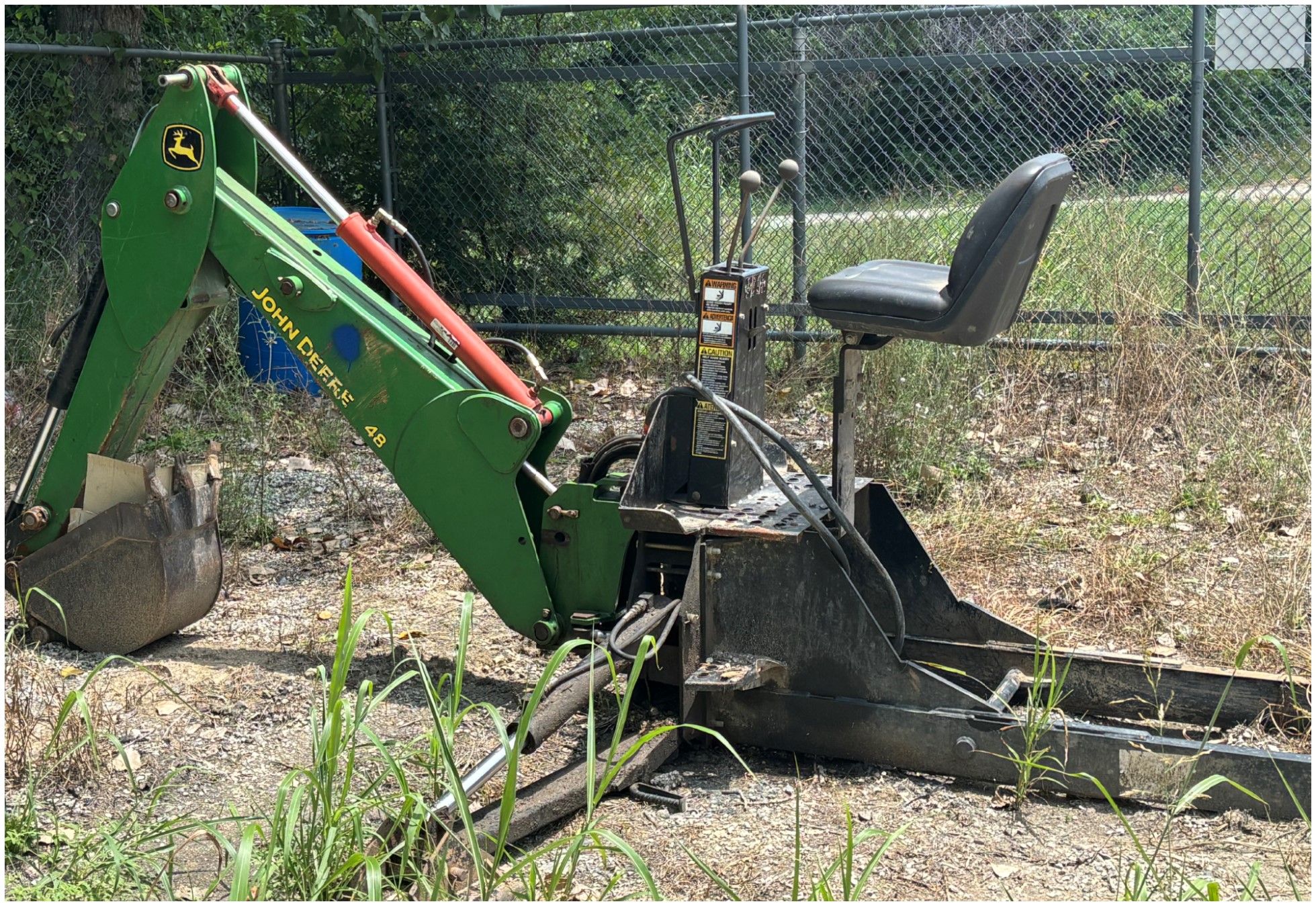 Mower (not in working condition) Model #: FM2102R, 1 post hole digger, 3 spray units, 1 5' harrow, 1 bucket of gravel, 1 pallet of pool filter sand; Location 24