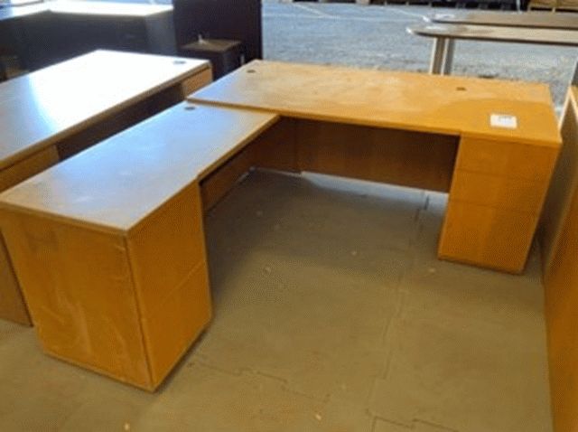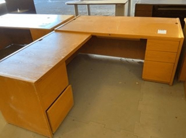 Oak Colored L-Shaped Office Desk with Left-Handed Return