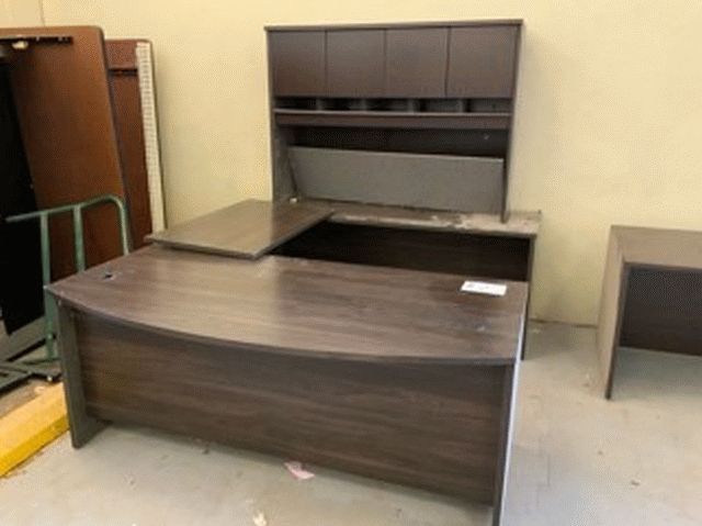 Dark wood, U-Shaped Office Desk with Overhead Hutch