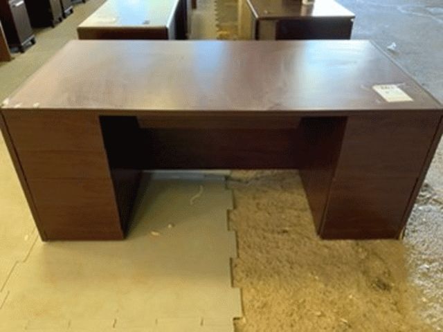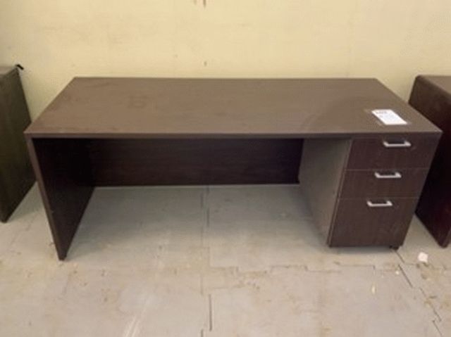 Dark Wood, three Drawer Office Desk