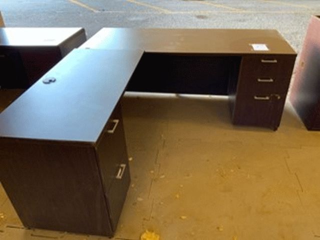 Dark Wood, L-Shaped Office Desk with Right-Handed Return