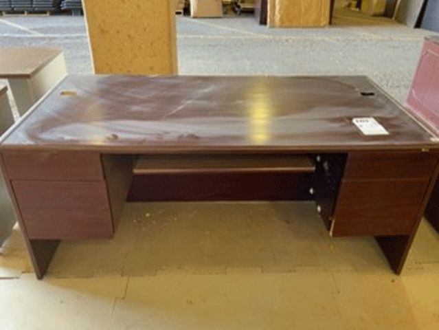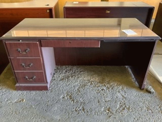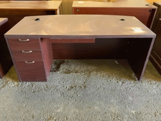 Red Wood Three Drawer Office Desk