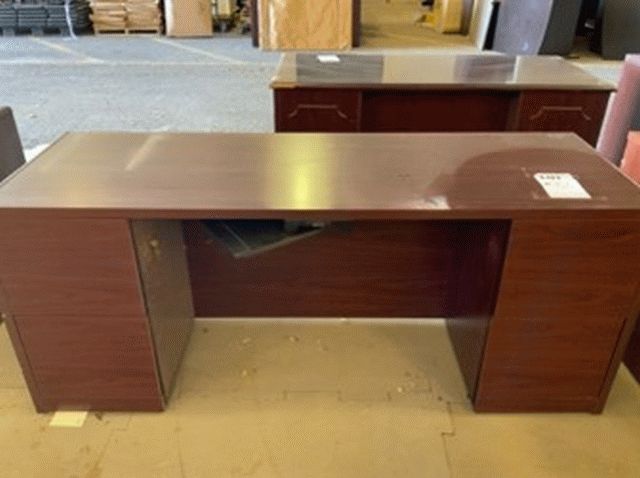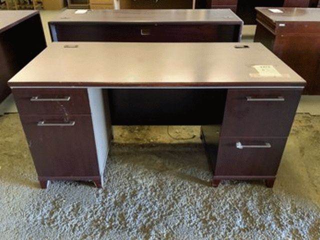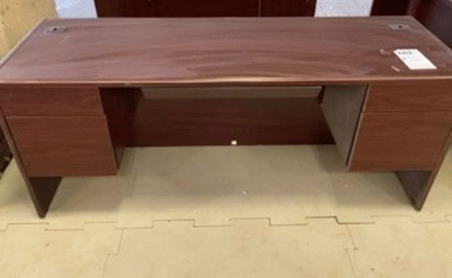 Red Wood Four Drawer Office Desk