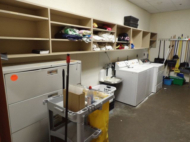 Contents of laundry room - washers, clothes, other misc. items. Shelving NOT included; Location 117