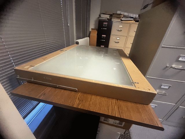 Magnetic Glass Whiteboard (White) One can dry erase on it and stick papers on it with magnets. 8' L X 4' H Brand: Quartet, unopened box; Location 4