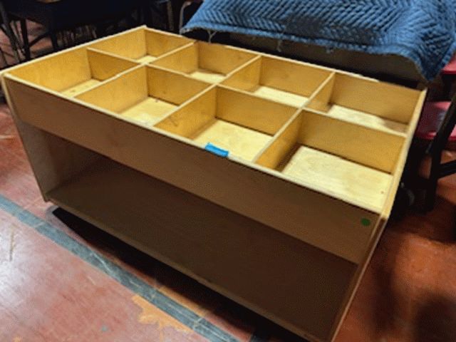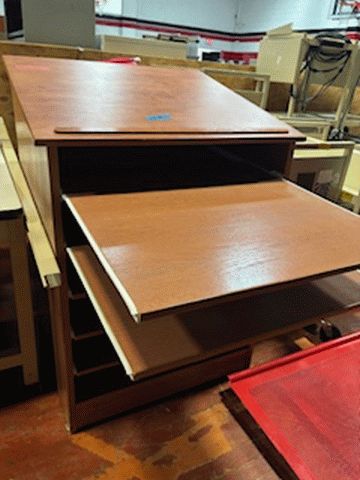 Science Tables (2 units), chemical resistant top; base wood with footing on legs; Location 1