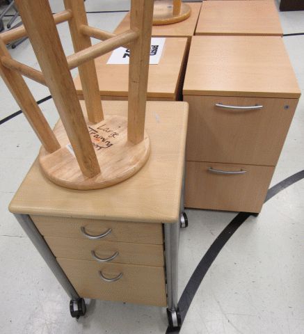 Used (4) wooden file cabinets, (1) metal/wood file cabinet and (2) wooden stools