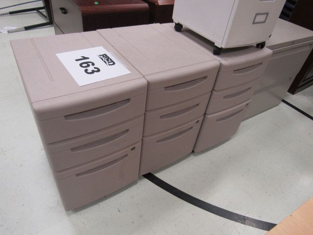 Used (1) metal 2-drawer file cabinet, (4) plastic under desk cabinets