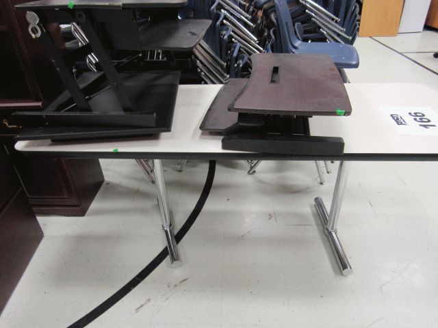 Used table, (2) computer risers