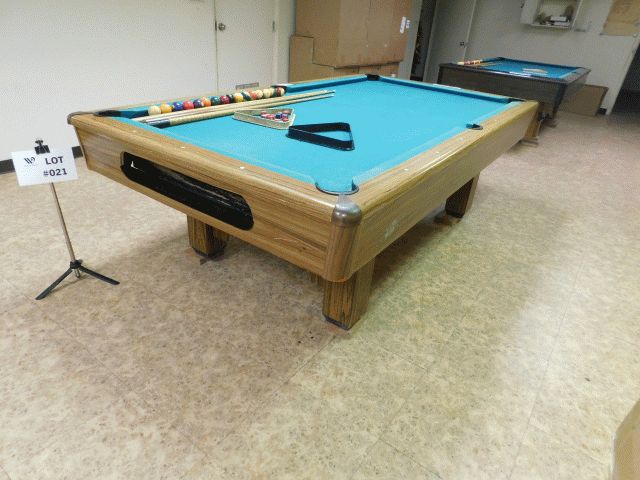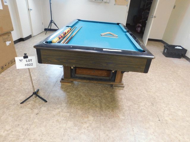 Lot of 1 Pool table, unit has wear and tear, felt wear and finish damage. Approximately 99" length x 56" wide x 32" high.
