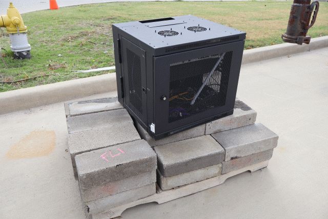 Pallet of concrete blocks and Cambium Network Switch with Cabinet - not working/has been exposed to elements; Location 1