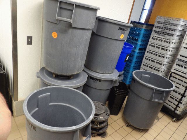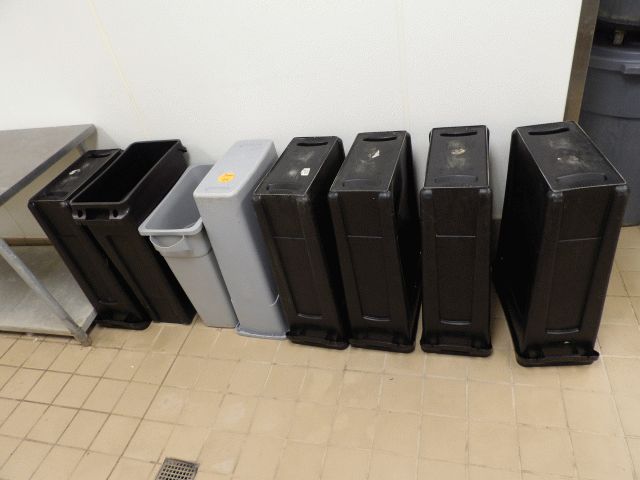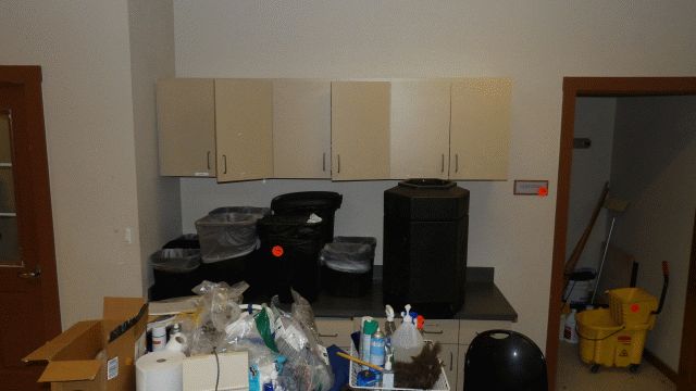 Lot of trash cans, cleaning supplies, medical supplies and contents of custodial closet; Location 116