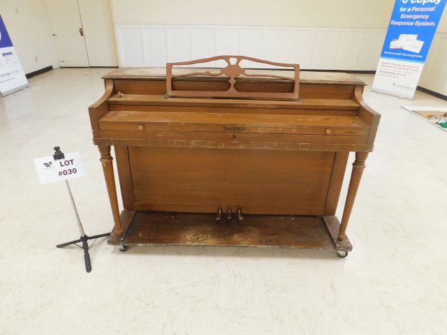 Lot of 1 Ivers & Ponders Piano Co. William F Miller piano. The piano has wear and tear, wood damage, and scratches. The sheet music holder is a handmade replacement. Approximately 59" wide x 29" deep x 36.5" high.