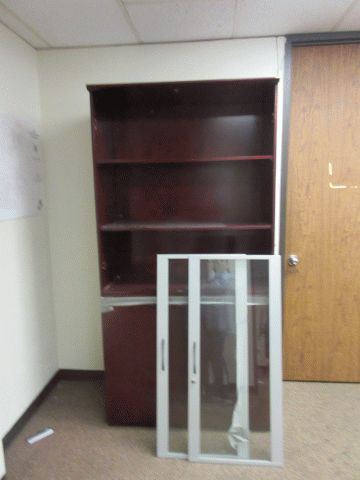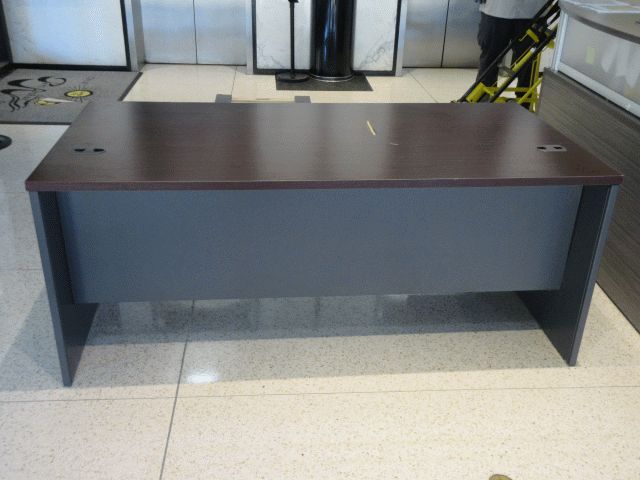2 gray files; Brown and black desk; Location 1