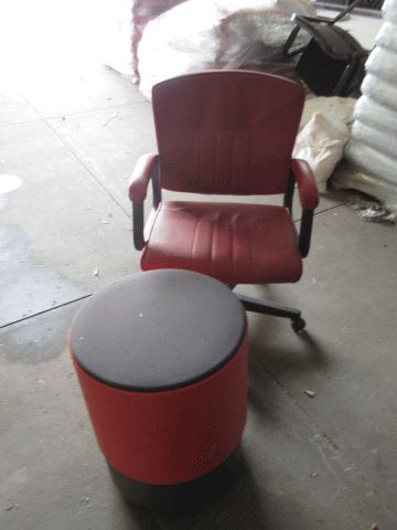 Red chair and balance beam; Three shelf; Whirlpool microwave; Location 1