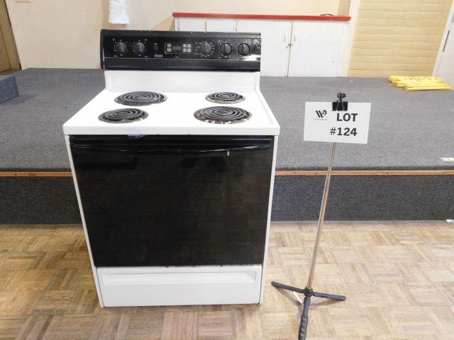 Lot containing 1 Amana Self Cleaning 4.8 Cu. Ft. range Model #ARR6Z0ZW, Sn #9910186175 Approximately 30"wide x 28" deep x 47" high. Unit has visible wear and tear and damage operational condition is unknown.