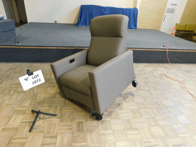 Lot of 1 #1607 Amenity Layflat recliner with casters. Unit has wear and tear, stains and 1 broken caster.
