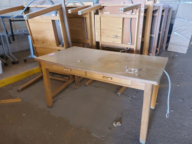 1 Oak Colored Wooden Workbench Modules with Drawer and built-in wiring can be wired to other modules; Same Picture Used for Lot 23 through Lot 34; First Come, First Pick