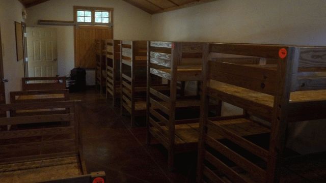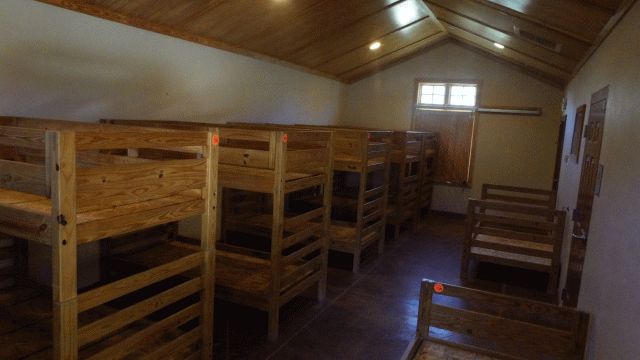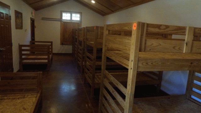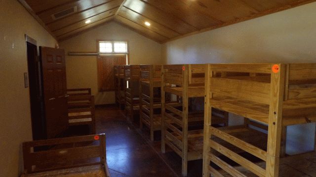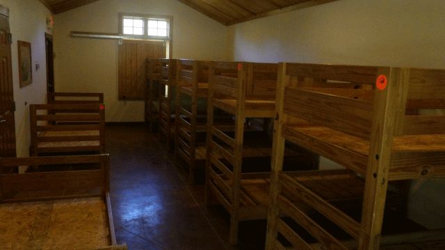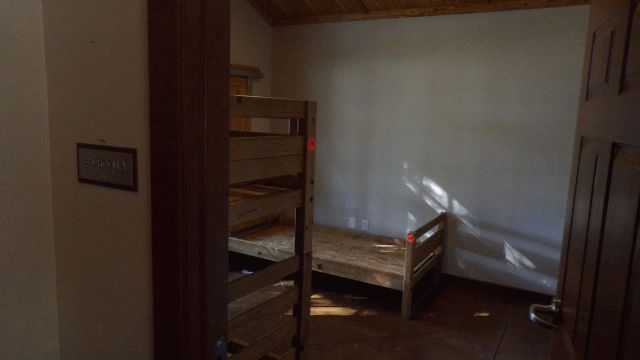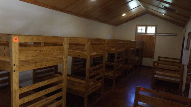 Lot of 8 Bunk Beds, 5 Trash Cans, 5 drawer chest, 1 table 6 chairs, and 1 fire extinguisher; Location 19
