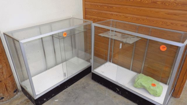 32'' x 98'' x 41'' animal habitat, 6 tables, 1 bag of bedding and 1 trashcan; Location 22