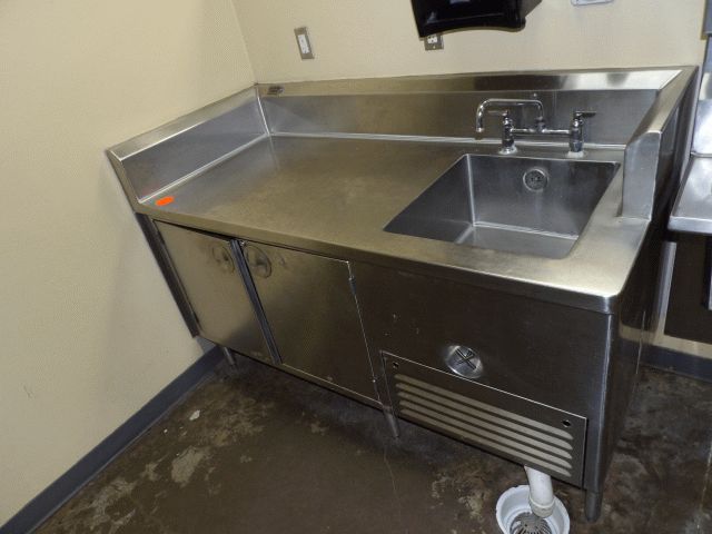 Stainless steel left hand sink prep table with 2 door cabinet; Location 117