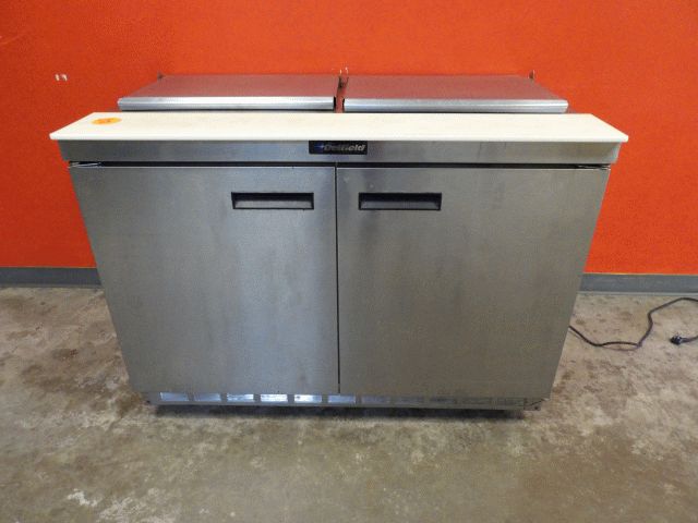 Delfield refrigerated prep table with double door and double lid. 48''x 33''; Location 117