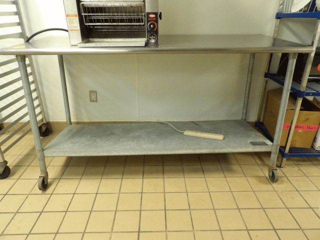 Stainless steel rolling prep table with undershelf. 6'x 30''; Location 117