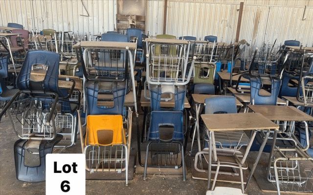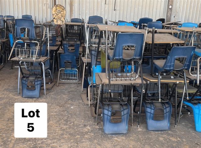 Qty 4 Rectangular Tables, 2 Metal Carts, 2 Student Desks; Location 1