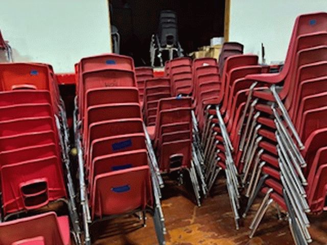 Student Chairs (set of 25) Red; Various styles, versions of red; First come first serve; Same Picture Used for Lots 67 through 70; Location 1