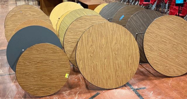 Round Tables (set of 3); various laminate colors, first come first serve; Same Picture Used for Lots 72 through 75; Location 1