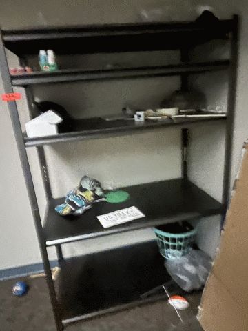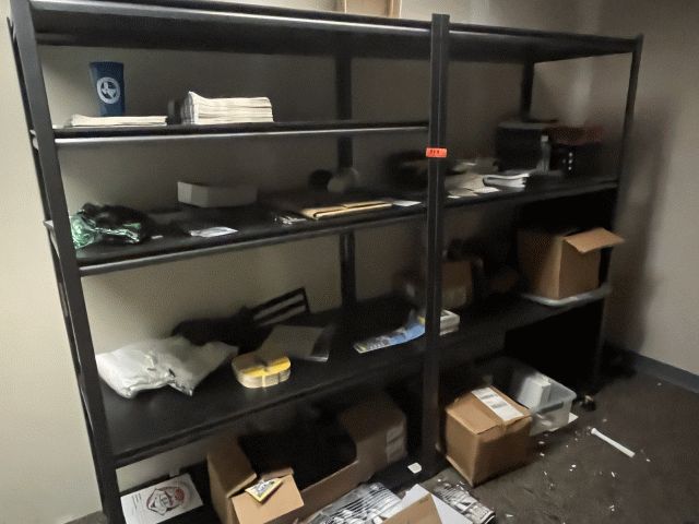 (2) Metal Shelving. THIS LOT INCLUDES SHELVING UNITS ONLY - ITEMS PICTURED ON SHELVES ARE NOT INCLUDED IN THIS LOT