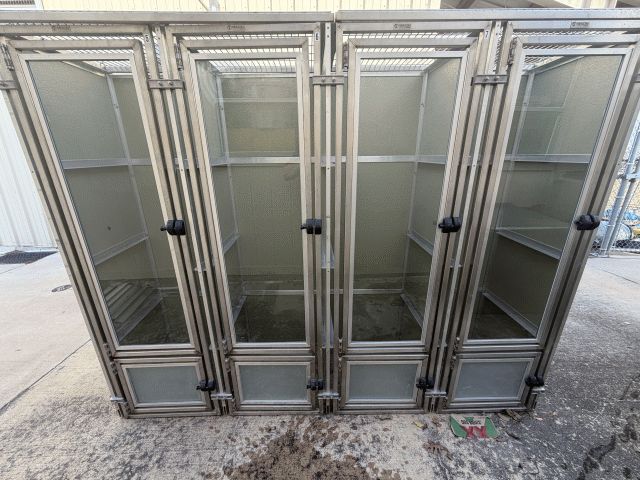 Mason Kennels, Cat Condos. L 96.5" H 76" D 24"; Set of four. On set has a modified door system. Interior platform