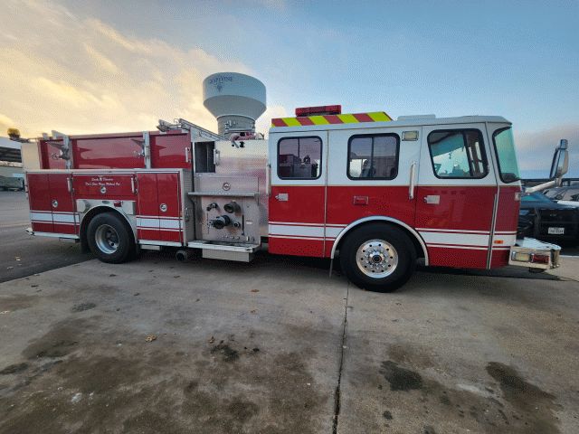 2001 E-One Pumper Fire Truck; VIN 4ENGAAA8X11003294; 168,845 Miles showing; 7,472 Hours showing; 12.7L Diesel; 370 HP; Auto; Bucket seat; Rubber mats; A/C; PS; Spotlight; No key; Running when removed from service 12/16/25; FRONT BUMPER DAMAGE; 4/11/25 Repaired air leaks, PMA service, 4 Batteries, 1/2/25 PMC, Front Hub Cover, Worn from use; Hale (VPS) pump module Q-Max 150-23 single stage; 500 Gallon Tank; 1500 GPM